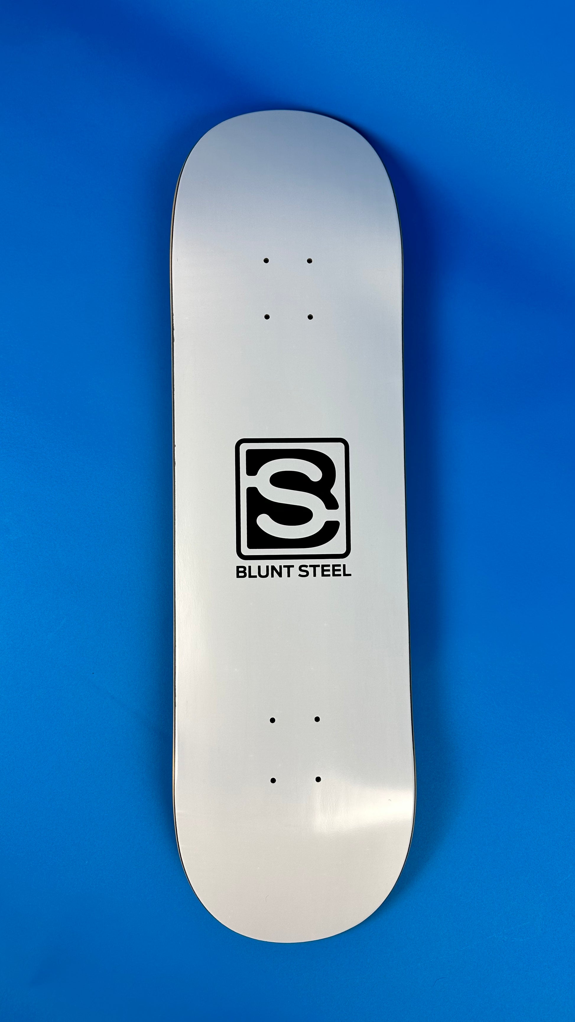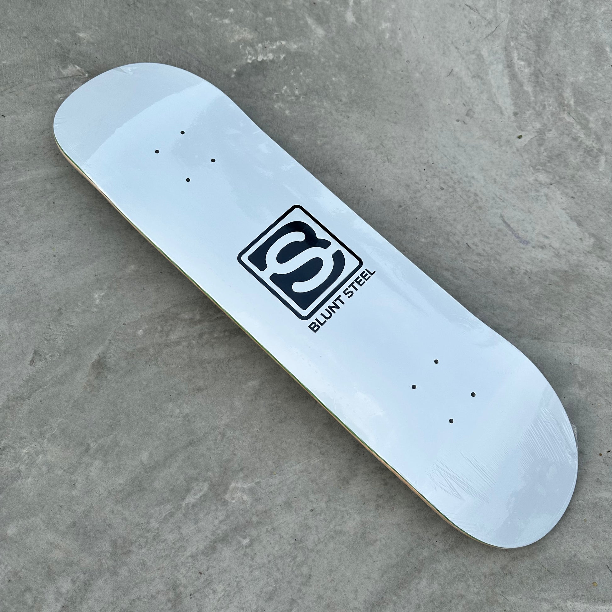 Plain and simple. All white deck with the black BS logo classy and fun on the bottom and random colored top veneer. Sizes for the entire family. A family that skates together, stays together! Decks come from BBS and graphics done by Generator Distribution. ONLY THE BEST.