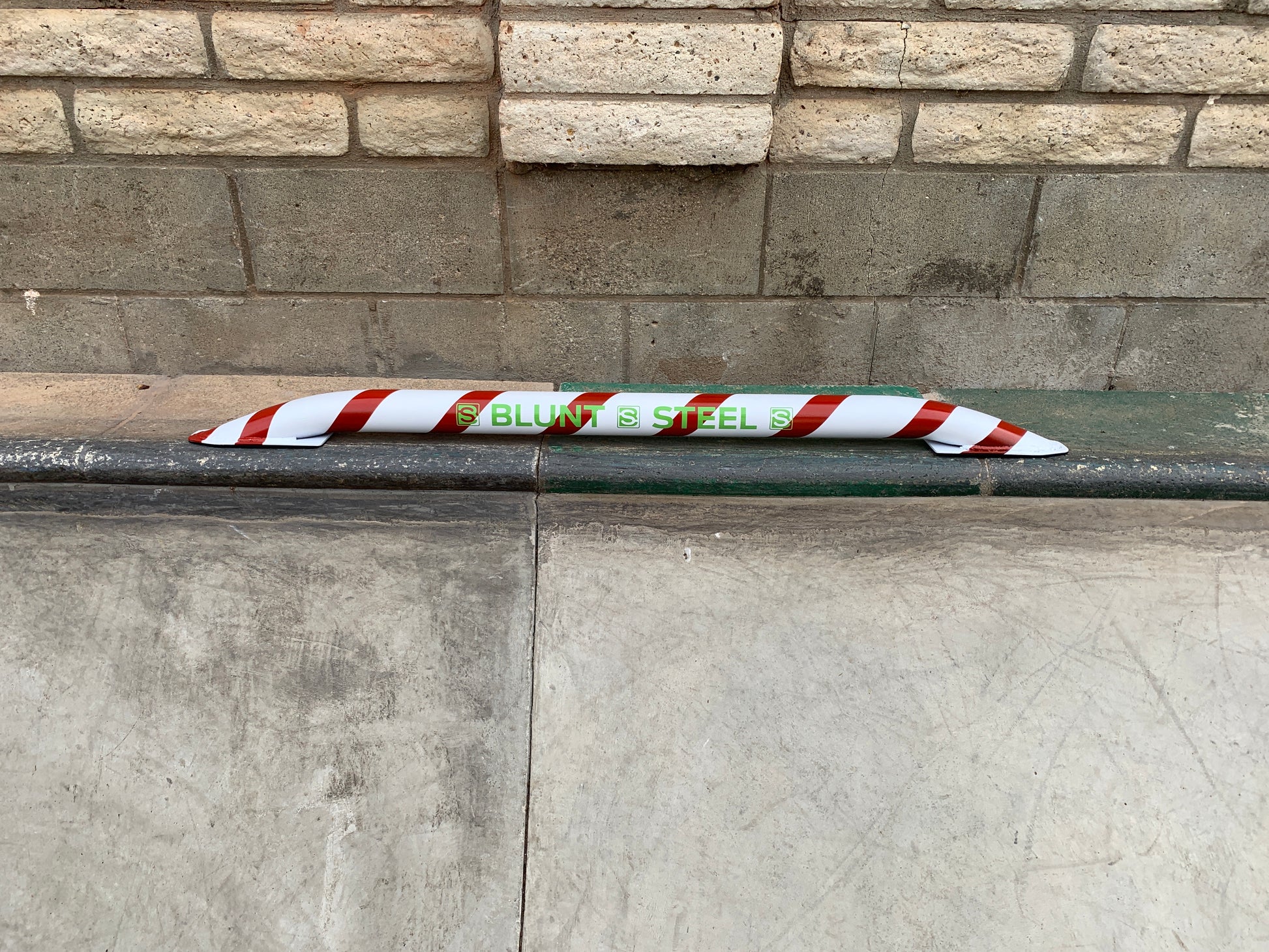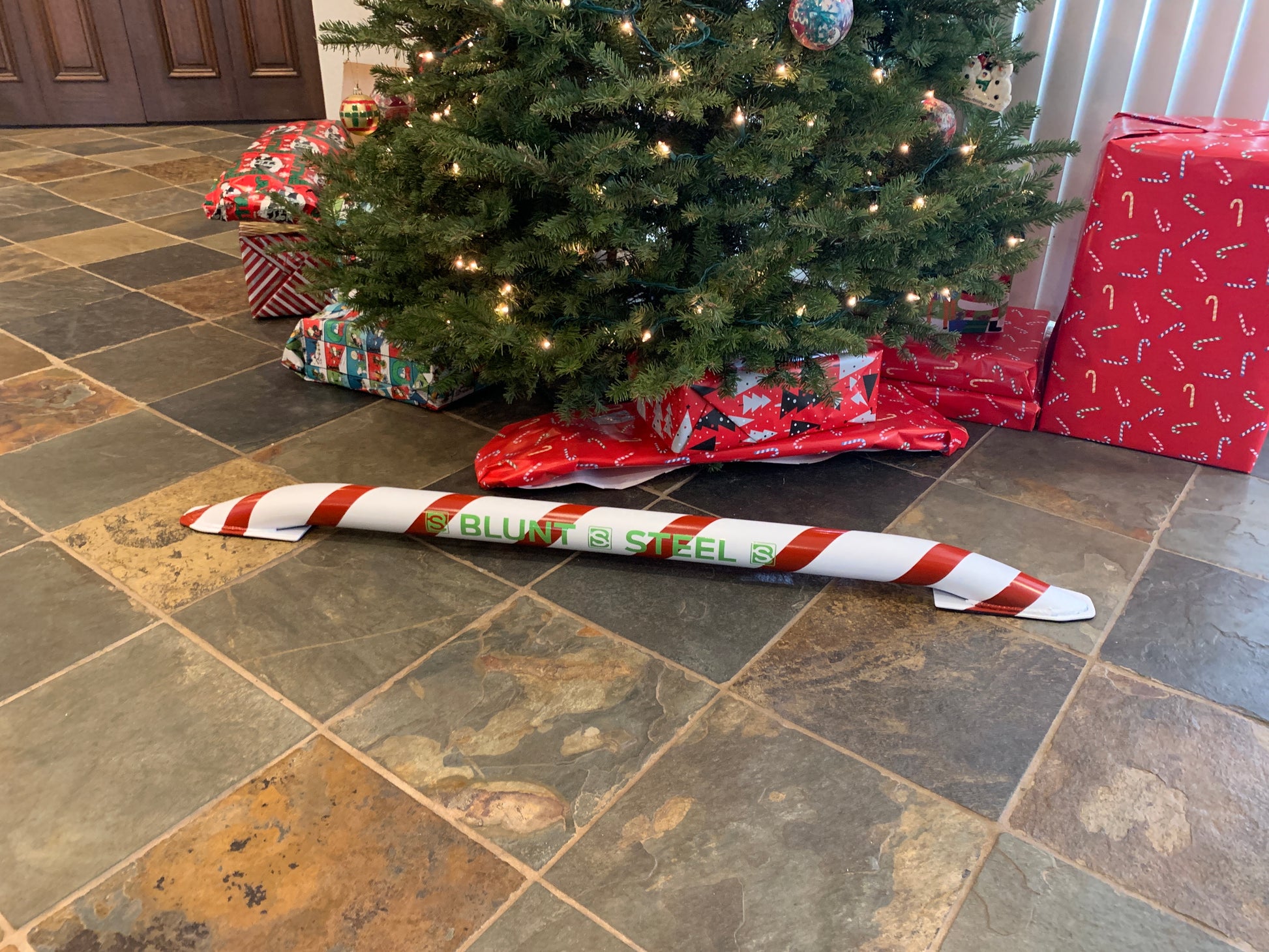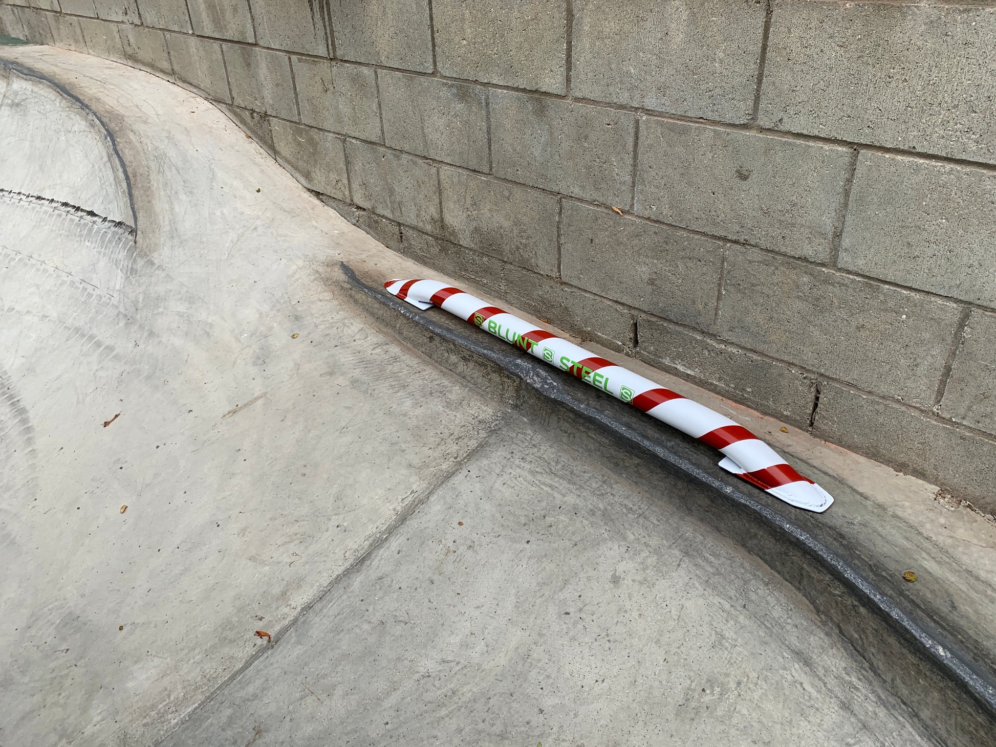 The BS Candy Cane Grom skate rail flat bar starts off as a 4’ long round piece of coping. Once fabrication is complete it sits on the ground with padding on the feet and is ready to grind AND LOOKS LIKE A CHRISTMAS CANDY CANE. Learn to grind a round rail without having to ollie. Super fun and portable. Only weighs 13 pounds so kids can take out and put away on their own. It’s called the Grom Bar but everyone can have fun on it, especially Santa!